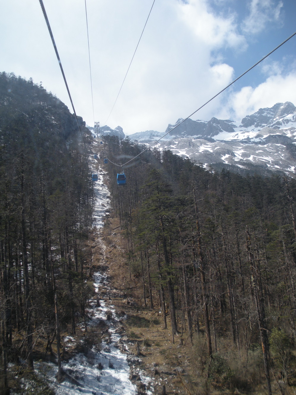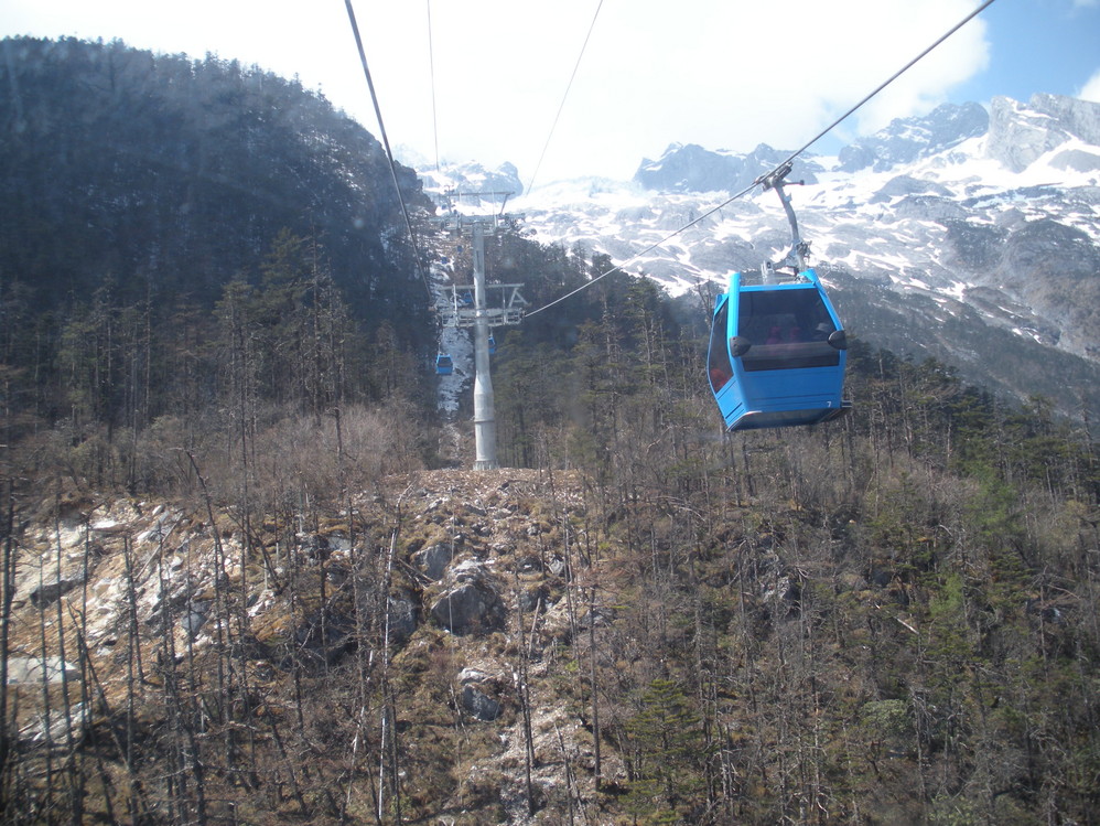 可以看到远处蓝色的缆车