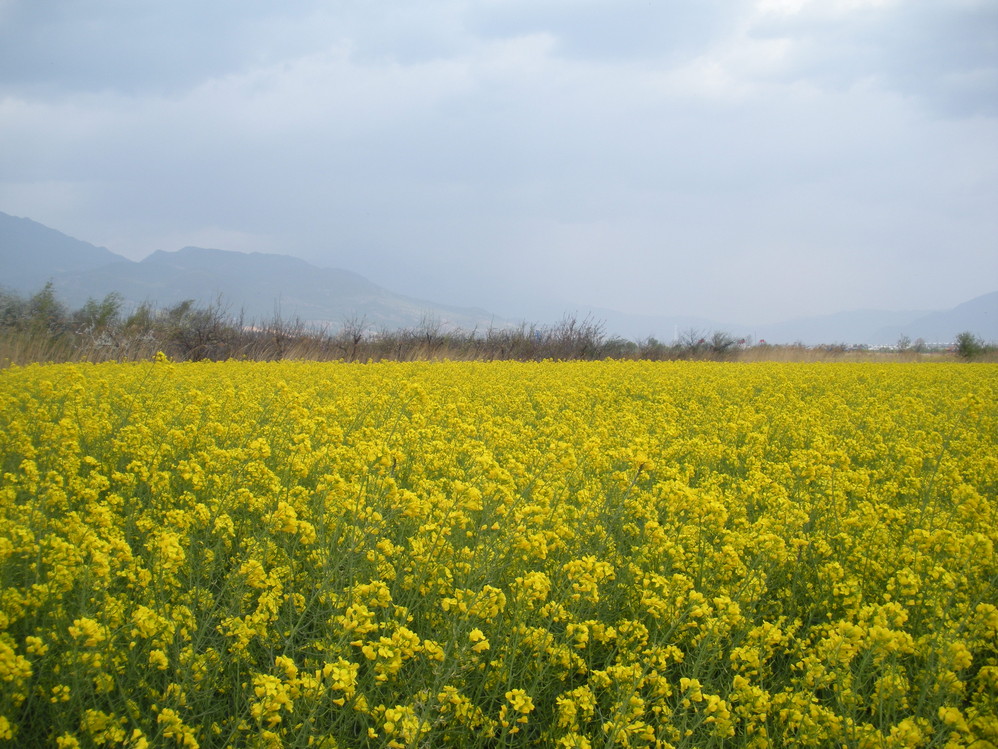 去拉市海路上的油菜花田
