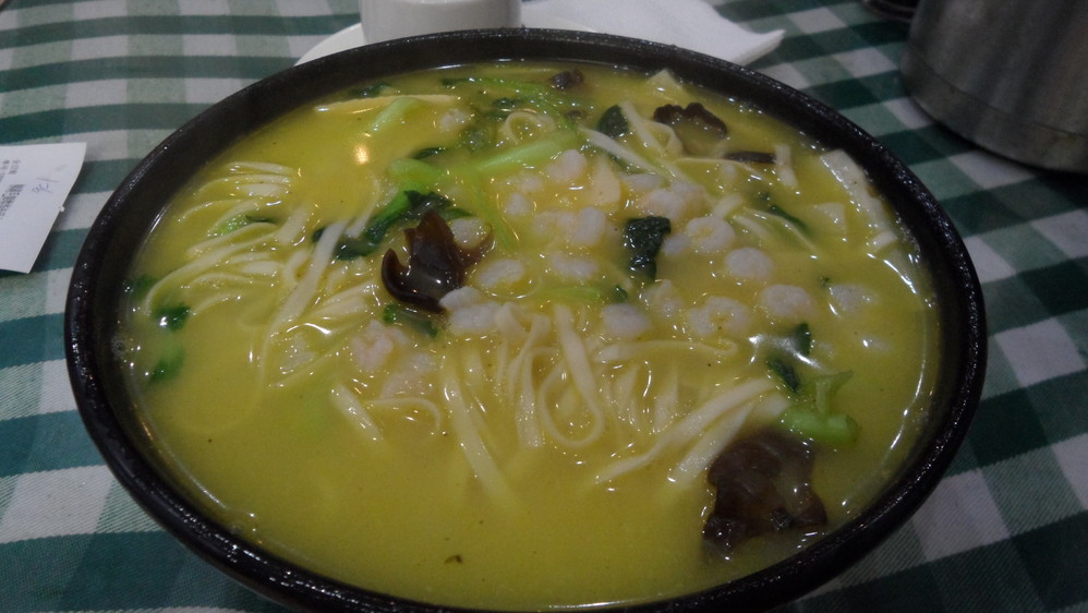 扬州大学瘦西湖校区大门对面的茶楼,虾仁煨面,味道还是很鲜滴~就是一个人根本吃不完。。。