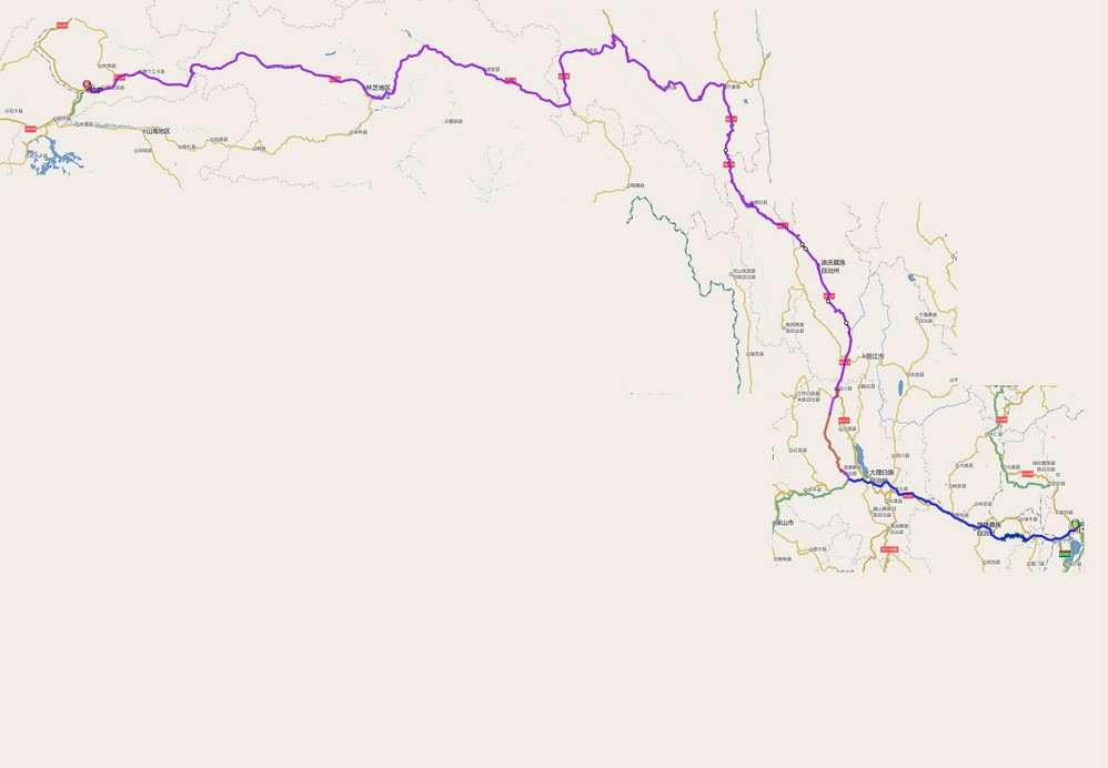 林芝 -工布江达 -墨竹工卡 -拉萨 :全程401KM油路。