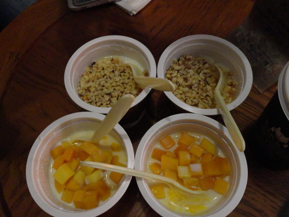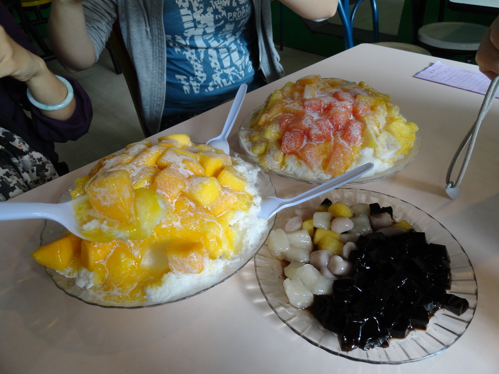 千辛万苦找到的店家,绝对是实物和图片一样,看见那盘料了吗,满满的满满地,水果,整个盖满了,看看我们另外加都仙草和芋园,共3元,其他店家做得到吗。生意很好,店不大