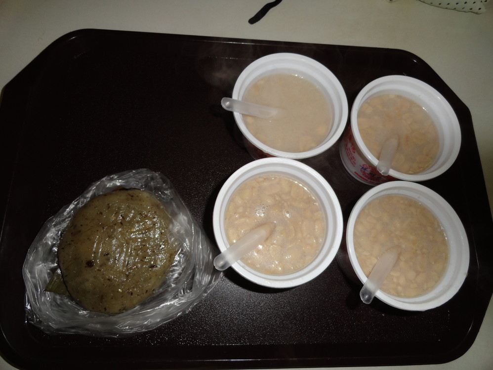 著名黄则和得花生汤,热的,希希的甜水,撒点花生,偏甜了,边上黑乎乎的是“曲曲龟”其实就是一个糯米团压压扁,不软不硬的。