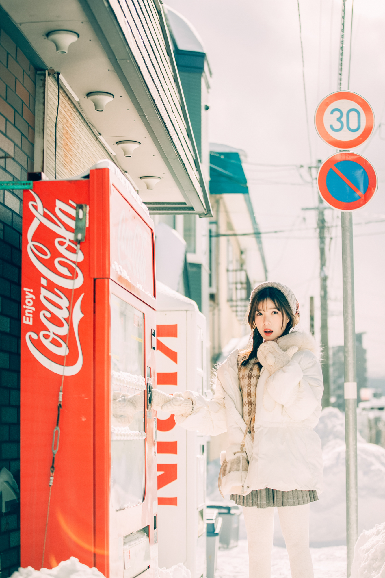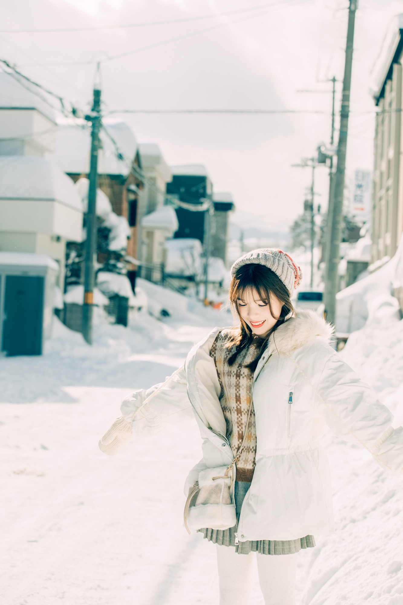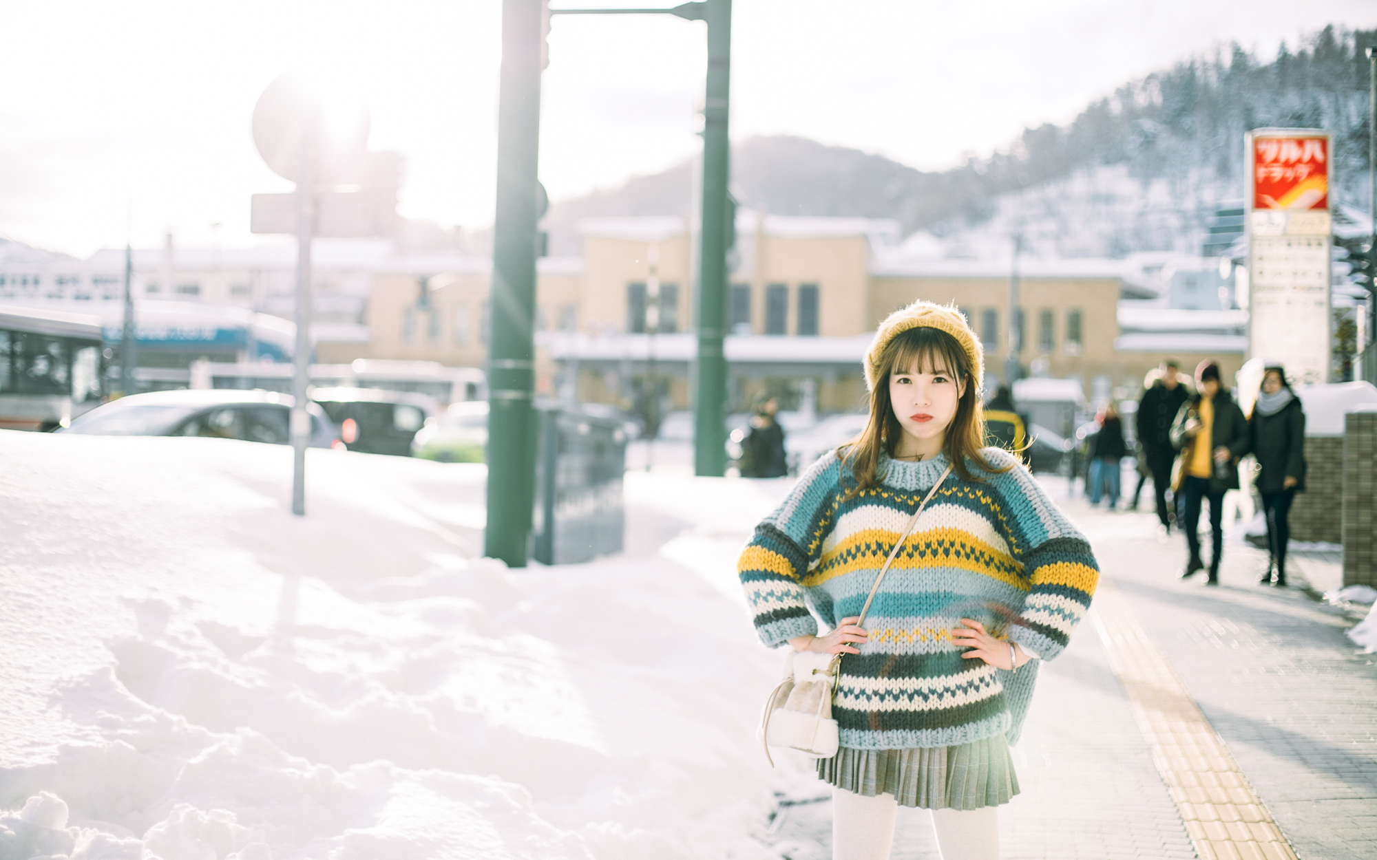 有太阳的雪天,天气不是很冷,A导似乎都还没感受到北海道的冷空气,一副朝气蓬勃的样子。了解的人都知道,我是A导的pose指导,热气腾腾的受气包表情新鲜出炉,请接住。