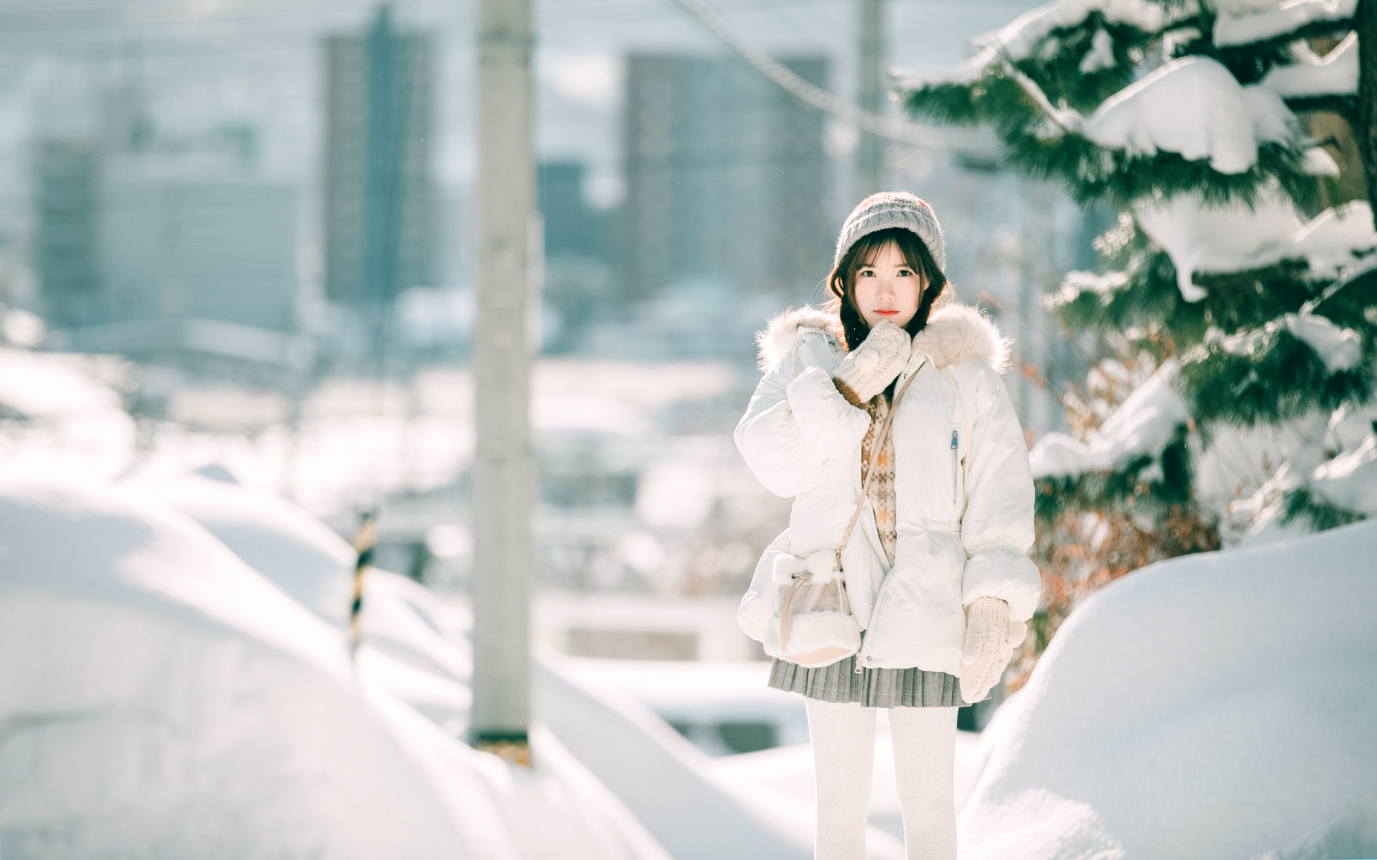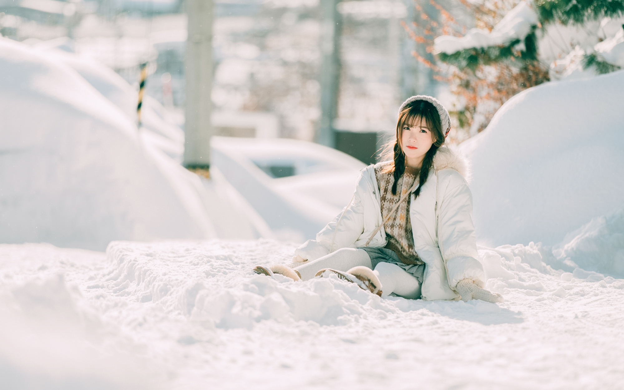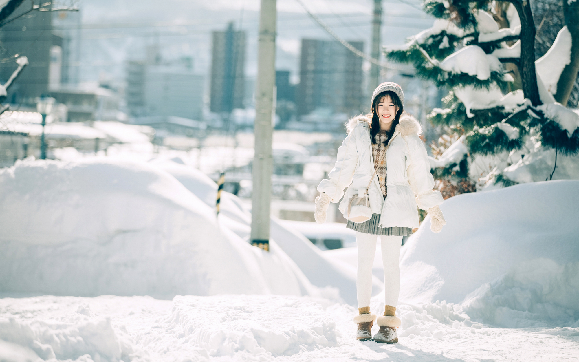 有太阳的雪天,天气不是很冷,A导似乎都还没感受到北海道的冷空气,一副朝气蓬勃的样子。了解的人都知道,我是A导的pose指导,热气腾腾的受气包表情新鲜出炉,请接住。