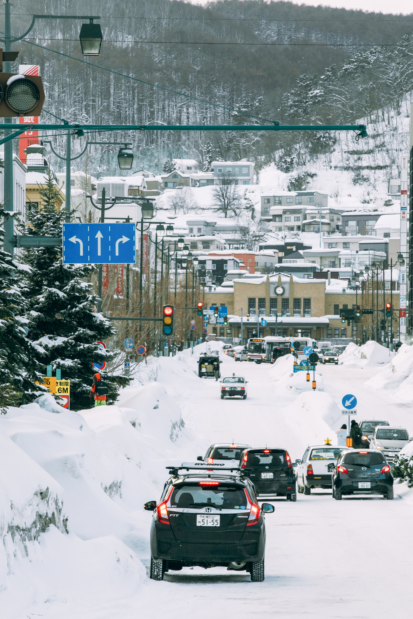小樽的冬天,雪是固定不变的主题。这次在小樽的住所位于车站对面,到站即酒店,方便雪天的行李搬运,这么贴心的安排,一定要给A导一个赞。迅速落脚,出门观察下周边环境,小樽的雪景往往是伴随着太阳的,路边的雪被堆得足足有一人身高,就连电话亭都被淹没在雪堆之中,开门费了好大的力。