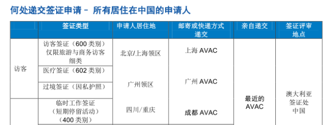 2、快递或邮寄递交(请查阅中国个澳大利亚签证中心地址)