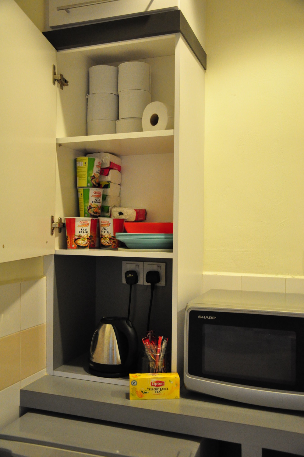 唯一度假屋里的方便面、咖啡、茶