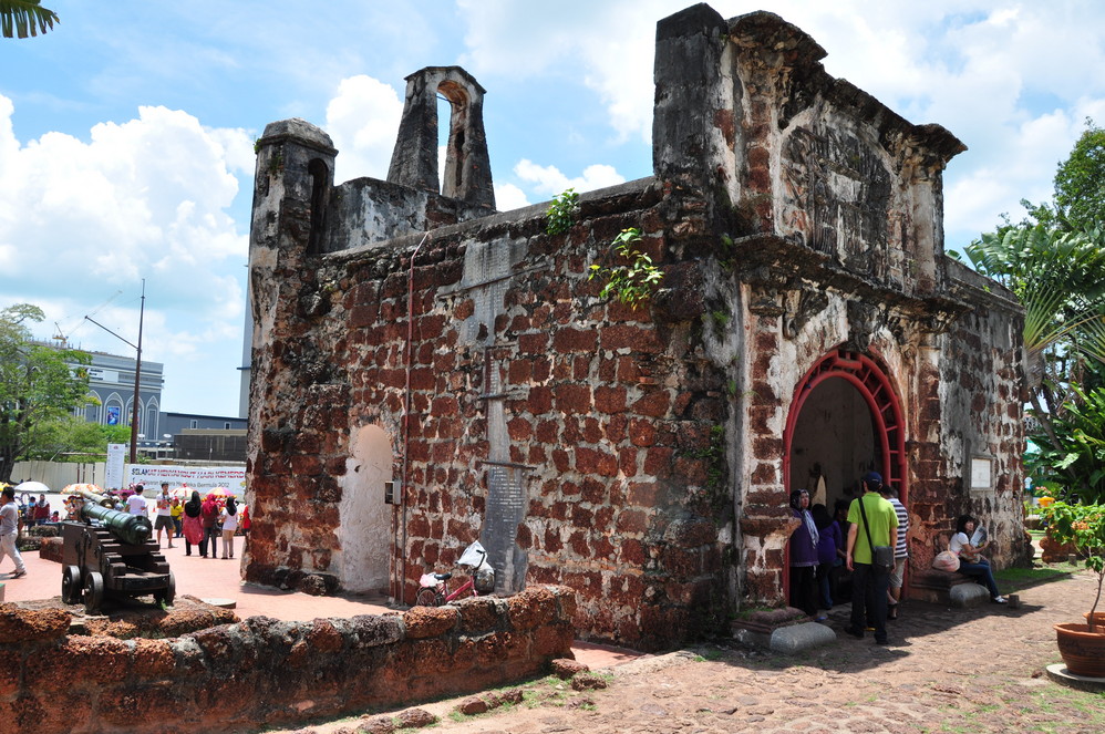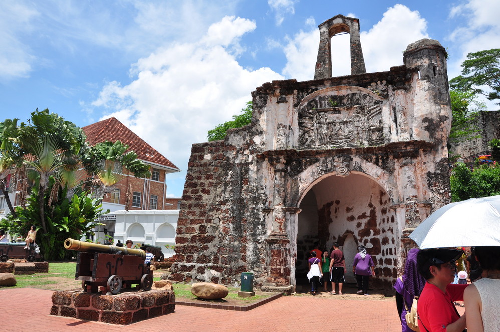与圣保罗教堂(/poi/5432160.html)同在圣保罗山脚下的景点是圣地亚哥城堡(/poi/5429813.html),这座城堡是当年葡萄牙占领后为防止马六甲王国的反攻而依山而建,地势险要,全部用巨石砌成。城堡在建成的150多年内经受了许多次攻击依然岿然不动,最后英国人只好用第一炮彻底摧毁了这座宁死不屈的石头城,仅有一座石门幸存,当地人称它为“没有墙的城门”。城堡被当地人视为马六甲的精神象征。这座当年的城堡现在仅仅残存一座碉堡及其顶上的城楼残垣,。只有城堡墙壁上面的弹痕和城堡旁边废弃的大炮向你叙述着当年的历史。圣地亚哥城堡(/poi/5429813.html)和圣方济教堂都不收门票,圣保罗山也不高,登上去眺望远处的马六甲海峡也是这个景点惬意的事情。有趣的是从圣保罗山下一直往海边走去,有着保存完好的葡萄牙建筑风格村庄,住在那里的葡萄牙人后裔至今仍说着16世纪的葡萄牙语。