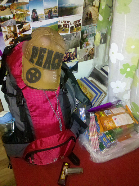 这次独自旅行计划了一个月,此次独行关乎个人反思,关乎个人心境,关乎个人心愿,似乎是一种使命驱使着我必须上路。出行的头一天,收拾好行李,这次我没有带《瓦尔登湖》,只带了一本人物小传记,我喜欢看人物传记,似乎在窥探他人的内心世界,竟而映射到自己身上,我又是过着怎样的生活。然后是带给山里孩子们的文具用品和糖果,这是我两年前在泸沽湖去家访孩子们回来后的一个心愿,另外糖果是我计划着一路上看到山里的孩子就分发给他们,他们的笑容是我想看到的。还有我的布鲁斯口琴,它总是给我一种流浪的感觉,最后便是背包。