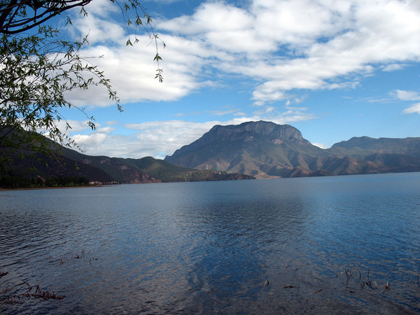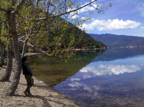 在情人滩看云卷云舒,这天阳光时隐时现。这个时候的泸沽湖还残留有冬的痕迹。