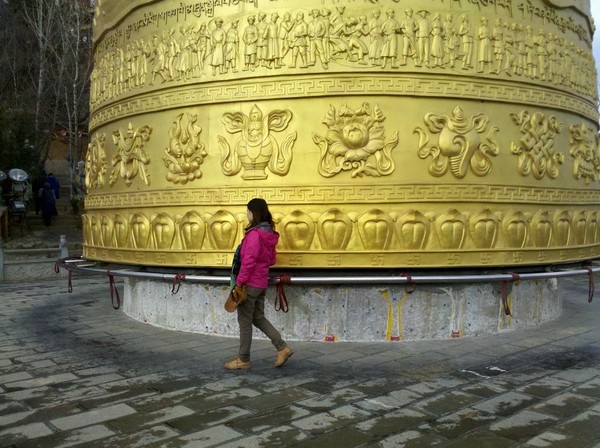 第二天清晨,又走到全世界最大的转经筒下,和当地的佛教徒一起围着转经筒转了三圈,感觉很平静。