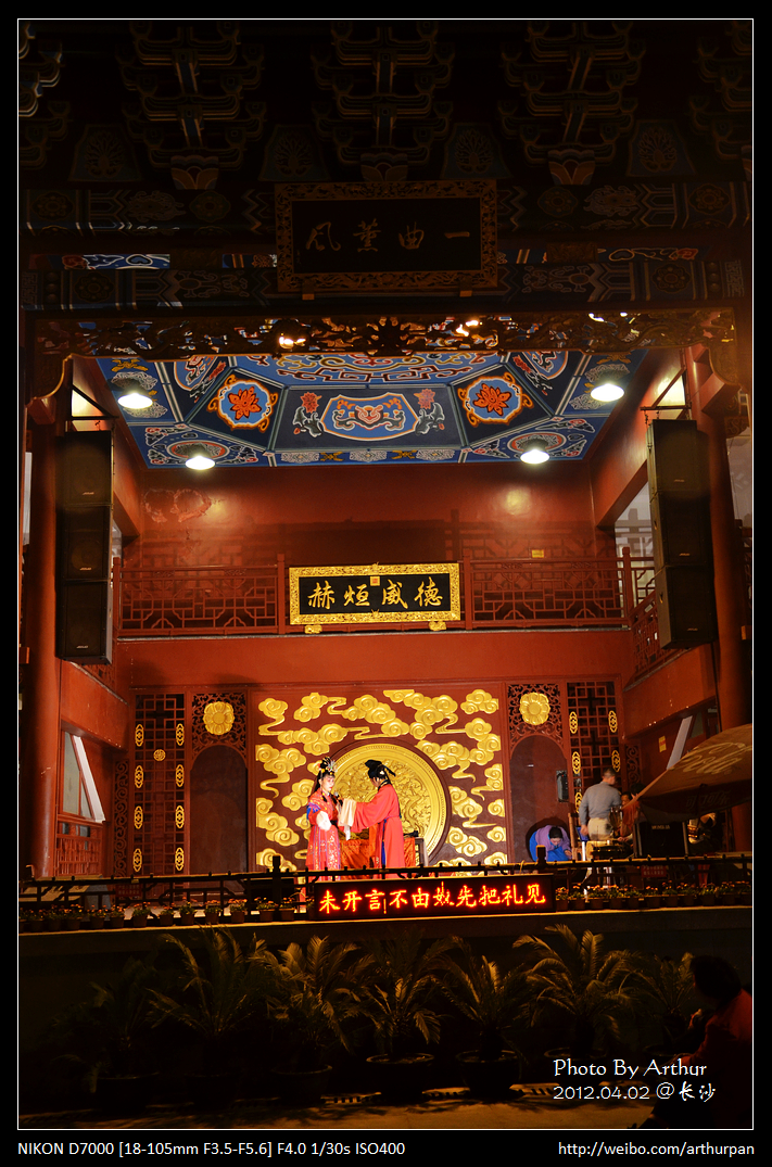 说好的小吃呢?正要出去时看到毛爷爷雕像下面的题字,难怪这里的名气这么大了,从雕像左边的小道走进去就是火宫殿的大厅了。