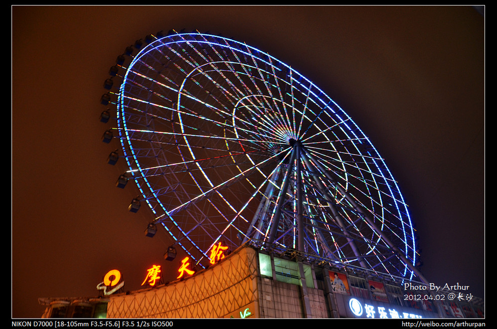 吃完饭出来都快十点了,但是之前预订的火车23:44才出发,于是打算去坐摩天轮 (在贺龙体育馆附近)欣赏下长沙 的夜景。