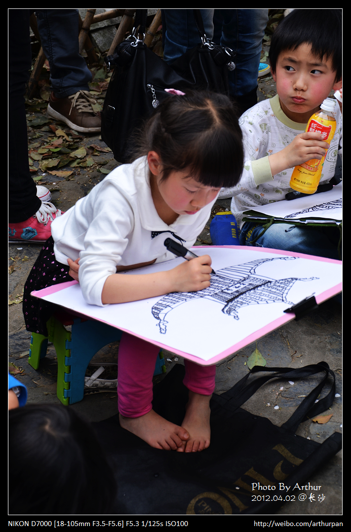 旁边有一帮小朋友在画“爱晚亭 ”,非常专注的样子,应该比我画得好多了。