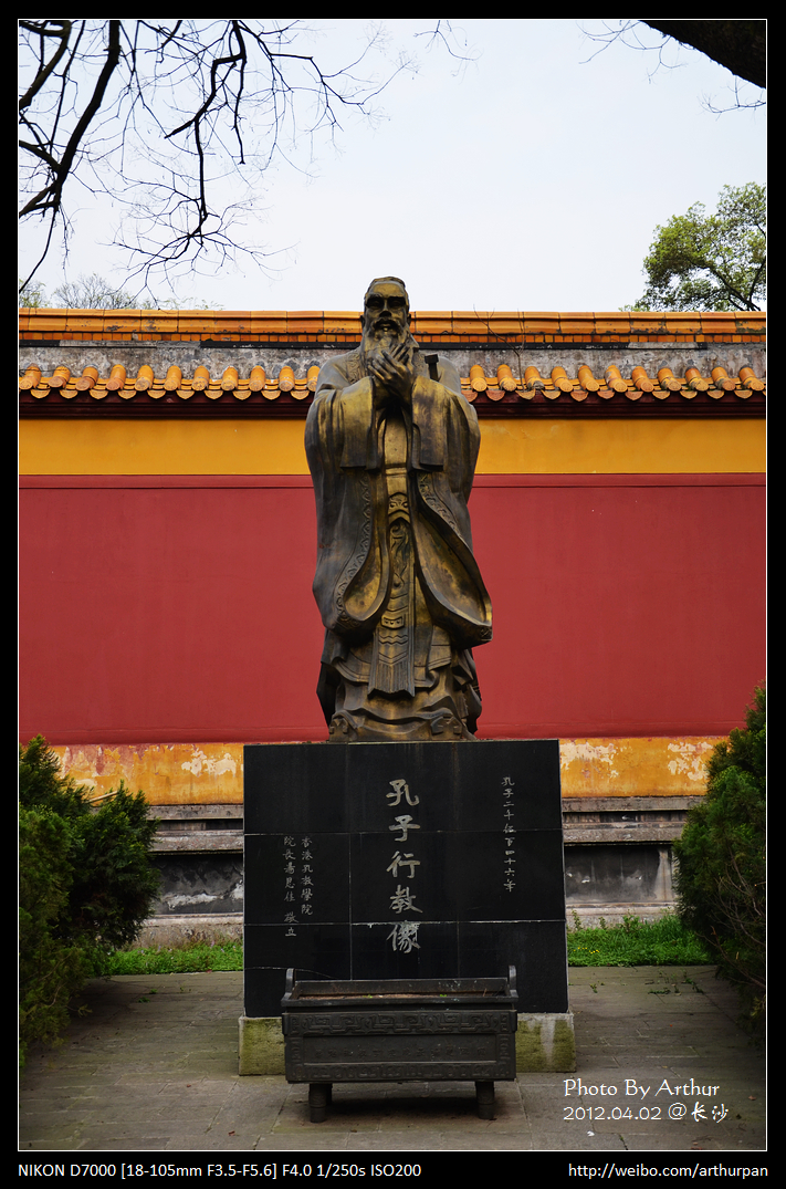 在书院旁边有一个文庙,风格跟书院不太相像,有点紫禁城皇室的风格,里面矗立着孔子行教像。