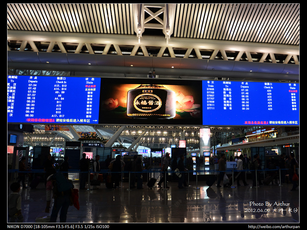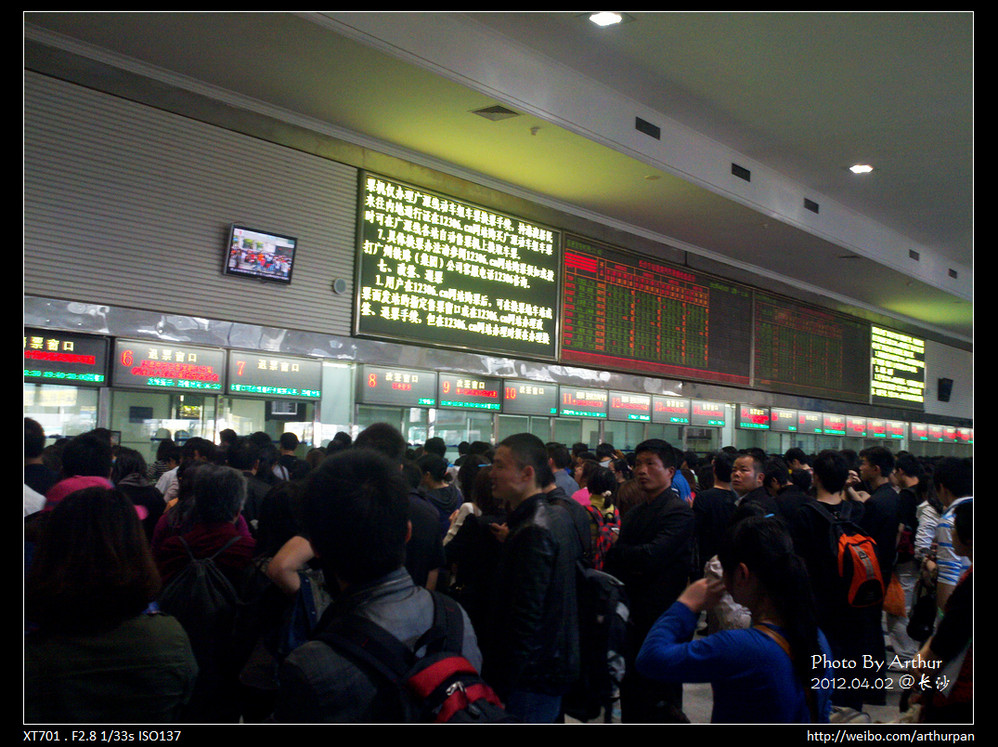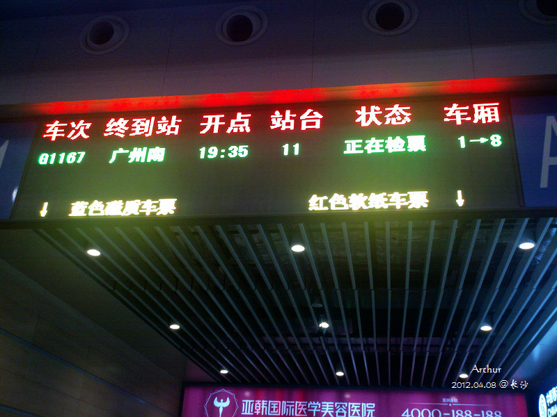 于是就打的去火车站,到那边时23点还没到,就领了寄存的行李在候车厅里等。没想到都大半夜了,里面等待坐火车的人还是那么多,连找块空地坐一下都没地方,应该很多都是前往张家界 、凤凰 方向的。