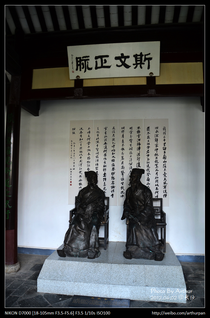 这是朱熹和张栻,偶有听到旁边的导游介绍两人在宋时举行了有名的“朱张会讲”,书院声名远播,而上面的牌匾《斯文正脉》是“这就是文化的正统”之意。