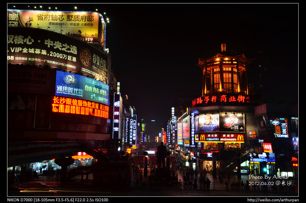 大概走了三四百米的样子,看到一片灯火通红的地方就到黄兴路步行商业街了。