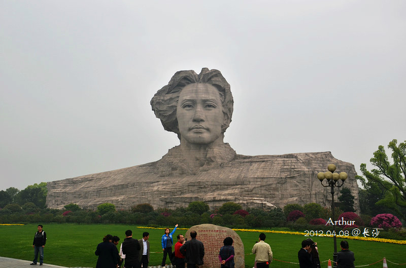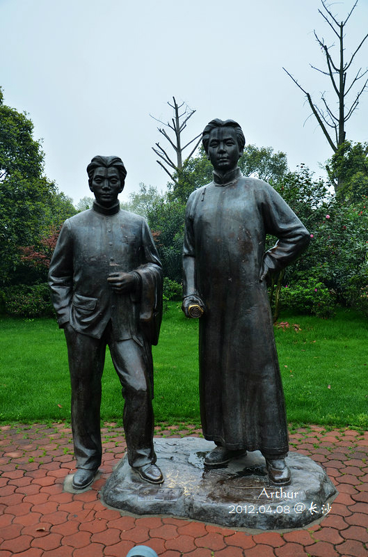 又见毛爷爷的雕像,不过这个跟浙大“打的招手”的姿势不太一样,不知湖大这个是否也有一些典故呢。