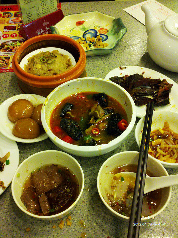 因为不太能吃辣,而又初到湖南 ,对这边小吃辣的程度还不太了解,所以点的比较保守。从点的几个小吃来看有点小失望,味道不咋滴,小点也没有广州 这边的好吃,也可能是点的不是地道的长沙 特色小吃的缘故。(回广州 前又去了另外一家火宫殿,有经验后那次的感觉就好了些)