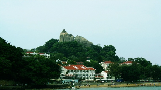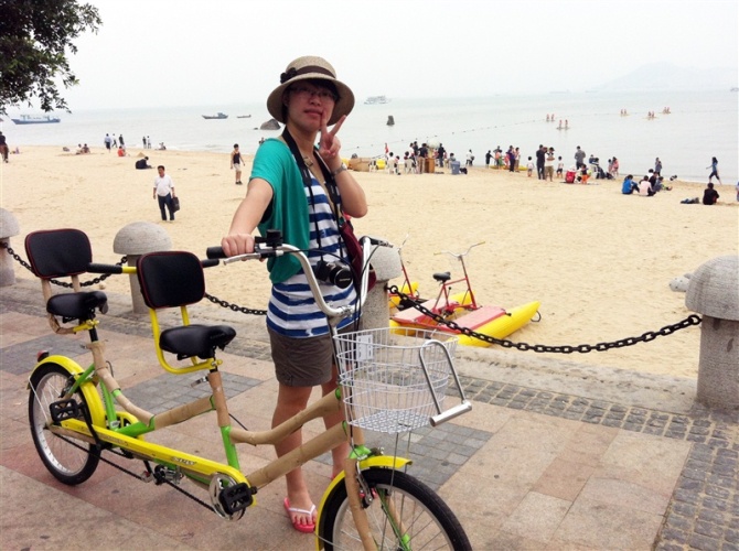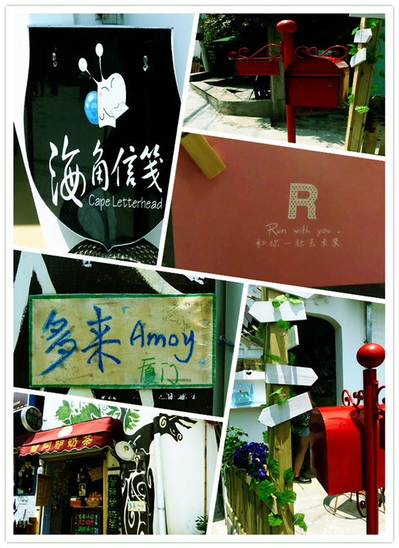早上起来的时候带着忐忑的心情跑到阳台看天气,非常适合运动,于是开始在厦门 的第二天行程,双人自行车绕环岛路,于厦大白城 下海,在沙滩上美美的走了一圈,非常惬意,山是山,海是海,不像深圳 山是人山海是人海,看惯了下水饺似的海滩的话就来厦门 看海吧。还了自行车,十二点回客栈收拾包裹跟城果客栈say goodbye,临走背着行李也不忘再仔细看看这个美丽的小渔村,很多有特色的小店还有家庭旅馆,本来要去“ 晴天见 ”吃冰淇淋的,无奈人家只有晴天开门并且从下午开始营业,好吧,下次有机会见,跟曾厝垵道别后前往美丽岛酒店 (中间出了一点小问题,但是都没有意义,所以不一一陈述,此处省略八千字),放下行李,直接奔轮渡,买票,四十分钟的环岛游轮,绕鼓浪屿 一圈,远观了郑成功 像跟日光岩,各种激动,各种鸡血,各种不淡定,想到了泰坦尼克号,想到了杰克,想到了肉丝,游轮停靠轮渡,终于是踏上了这个岛,鼓浪屿 我来了,往右手边走是各种特色小店,吸引茶饮(很特别的杯子有带回来)、潘小莲、赵小姐的店,张三疯 奶茶铺、娜娜旅店(超级气派)、八婆婆烧仙草(招牌烧仙草还没避风塘的好吃),原巷口鱼丸(终于吃到了与麦兜有关系的鱼丸粗面)、小马哥 马铃薯(我吃的是鸡蛋味的起司,薯仔真的超级软超级粉超级好吃),等等,往左手边走是靠近海的小道,比较安静,可以买到特产,在岛上晃荡稍不留神一个下午就没有了,吃了很多传说中的美食,进了很多特色店盖章,另类风格的小建筑看着特别有感觉,在大榕树下写了明信片,希望四位可以收到·