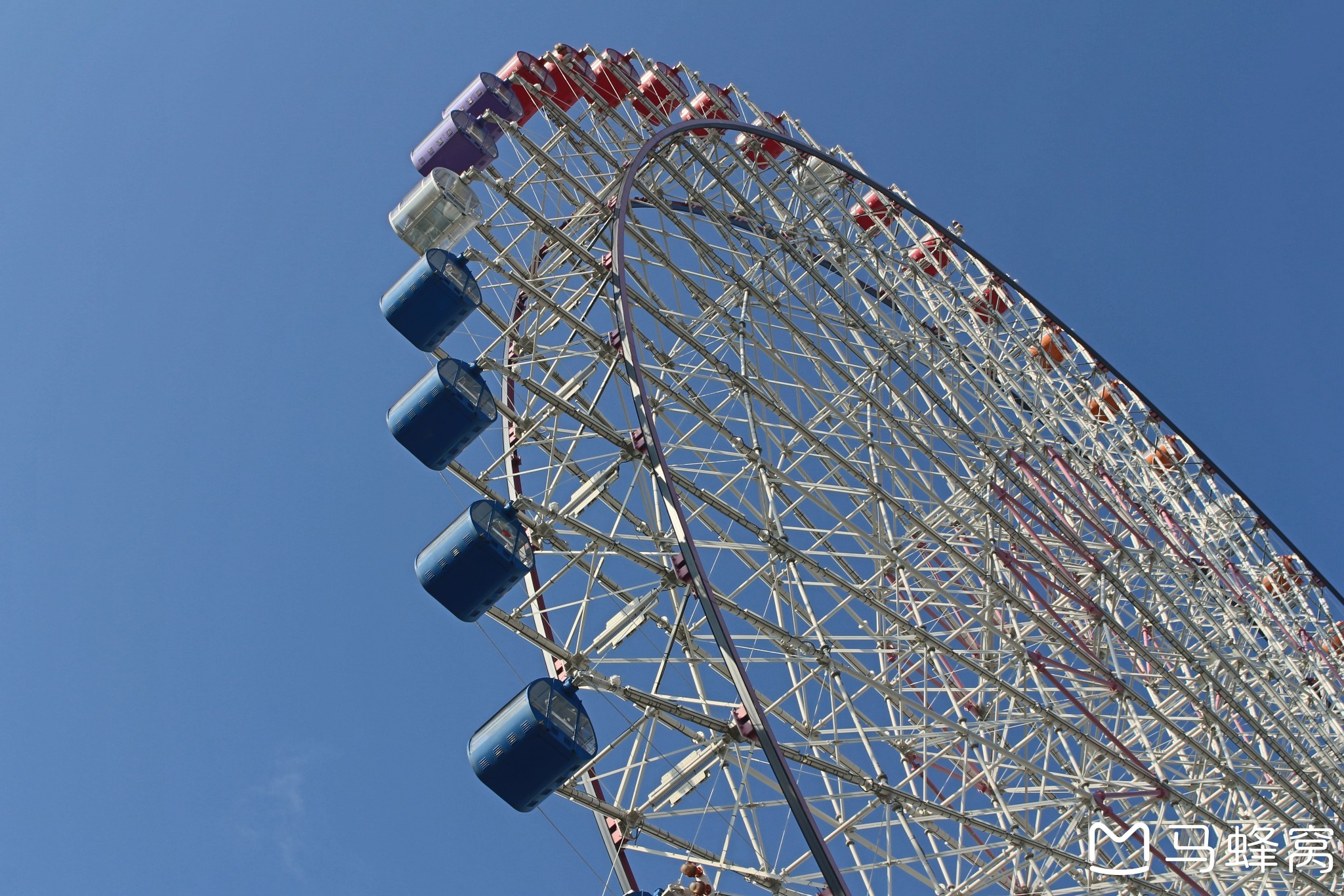 从商场出口出去就是天保山摩天轮入口,挨得很近,出示周游券即可免费乘坐。服务人员问我是要坐普通舱还是透明舱。说出来让人有些不好意思,我这辈子还没坐过摩天轮。人生第一次坐摩天轮,我选择透明舱,反正我不赶时间,多等一下即可。和我同舱的十分明显是个韩国妹子,我们全程没有一个字的交流,也没有一个眼神的交流。我安静地拍照片和视频,她亦是如此。摩天轮渐渐升高,大阪港尽收眼底:忙碌的港口,水上大桥上不息的车流,斑马线上来来往往的人,都变得渺小了些。我要再次感叹一下日本的街道真的好干净。过了最高处往下降时,我还有点担心摩天轮会摇晃,事实证明我多虑了,摩天轮很稳当地转完了一圈。