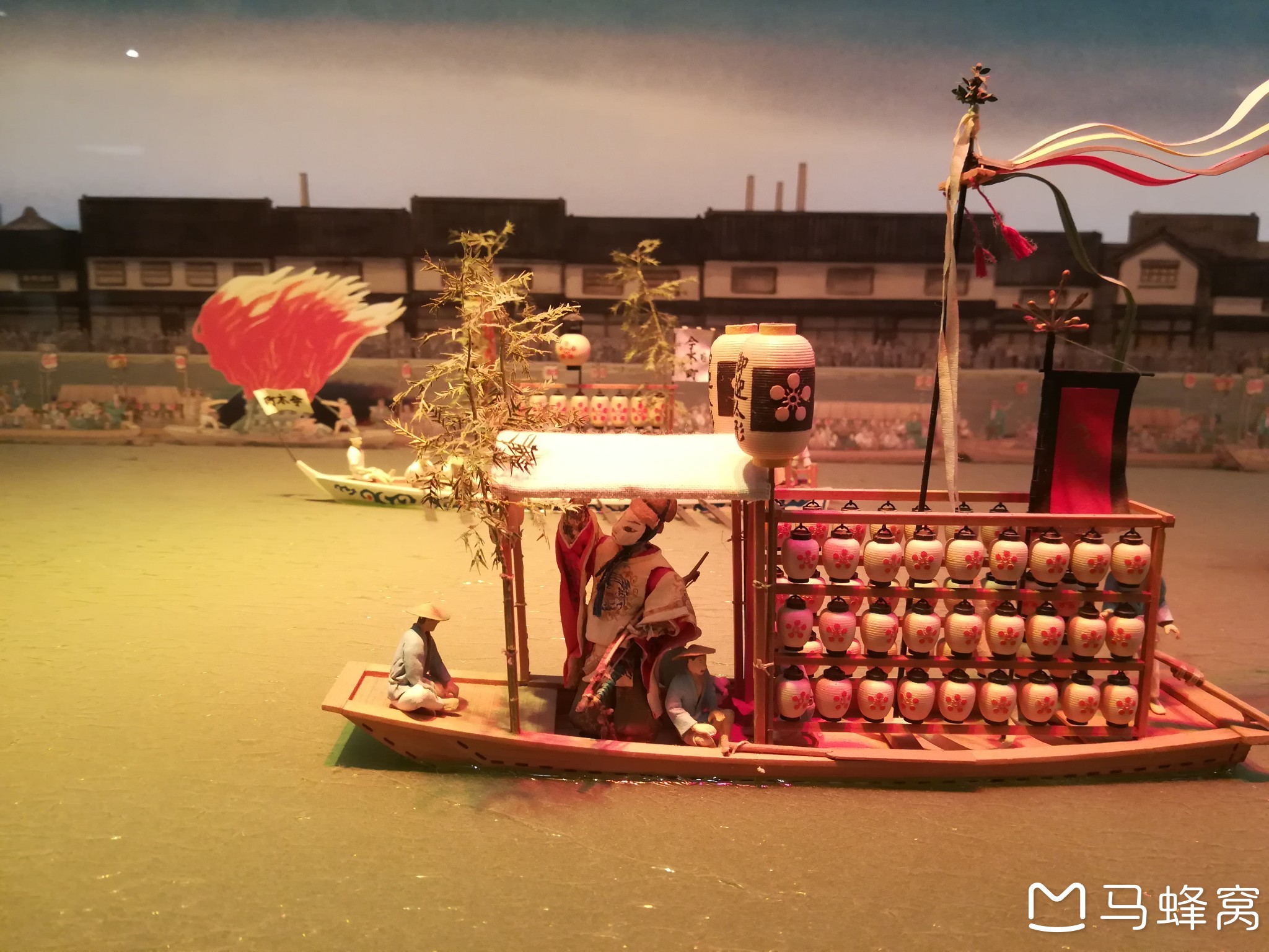 历史博物馆是从上层往下层参观的。在入口我领了小册子,在博物馆内集齐几个纪念章盖章,是丰臣秀吉等的刻章。透过最高层的玻璃窗可以远眺大阪城,不过视野不如在楼梯间从玻璃窗往外看的视野好。从上到下,从古至今,我按照时间顺序把大阪的历史粗略过了一遍。每一层都是一个历史区间,对历史场景的还原度比较高。大阪旧称难波和浪速。难波站就是保留的旧称,我昨天去的温泉也叫“浪速之汤”。我比较喜欢和风和洋风碰撞的展示厅,厅内服装店外穿洋服的小女孩十分可爱。