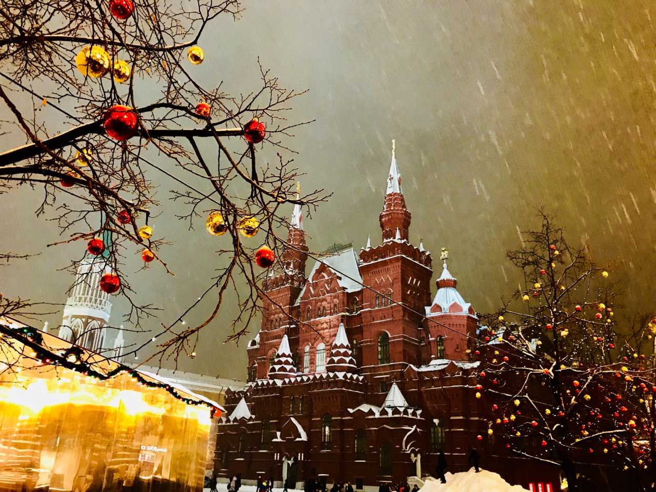 出了古姆就是红场,正好赶上莫斯科百年难遇的大暴雪,连俄航都晚点了