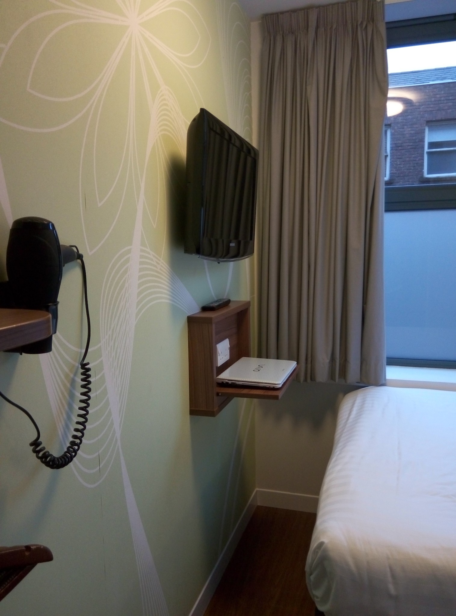 虽然只有9平方米,但麻雀虽小五脏俱全,环境还是可以的,对着内街住宅区,比较安静。和全世界的大城市一样,伦敦的住宿都很贵,像这种普普通通中端连锁酒店都1000元一晚不含早餐,所以国内的连锁酒店其实真的很实惠,同样配置的7天连锁酒店,在深圳一晚才270元,简直不能太超值了。