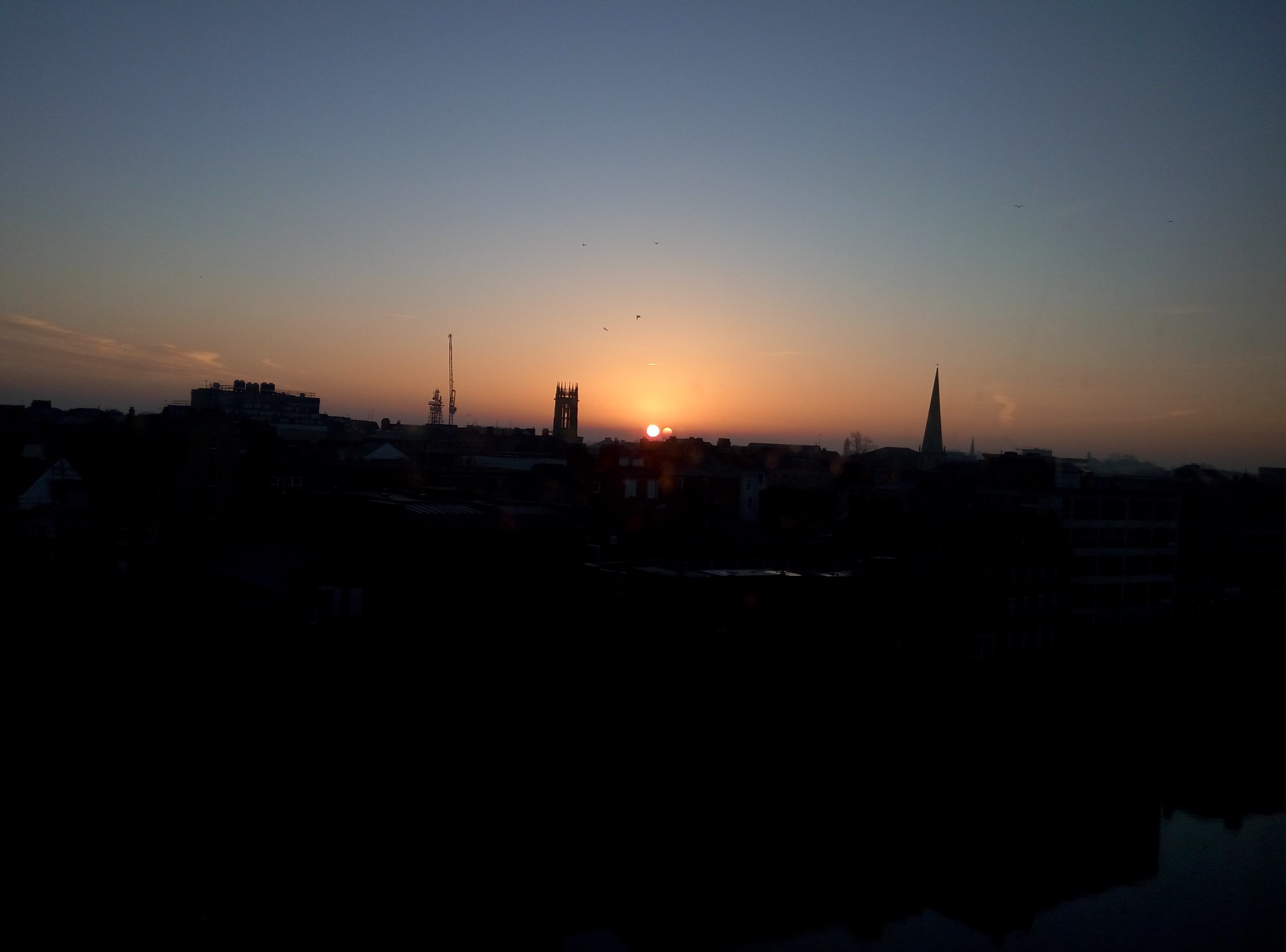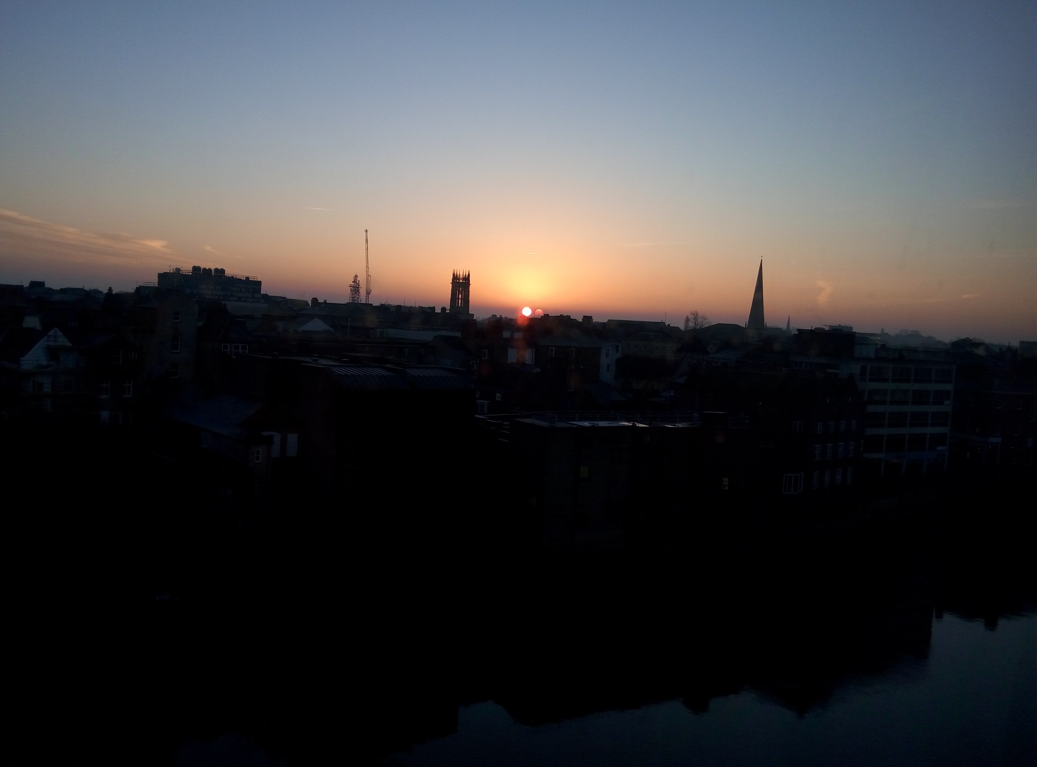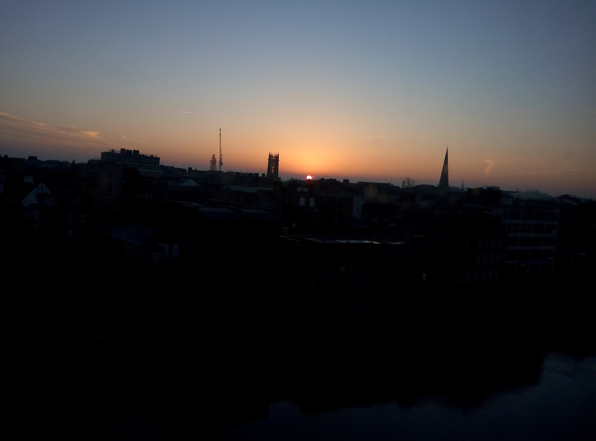 由于昨晚的火警谎报,导致我睡得不踏实,一早就醒了。拉开窗帘,哇!好漂亮啊!日出东方喔!然后就站在窗边看日出。