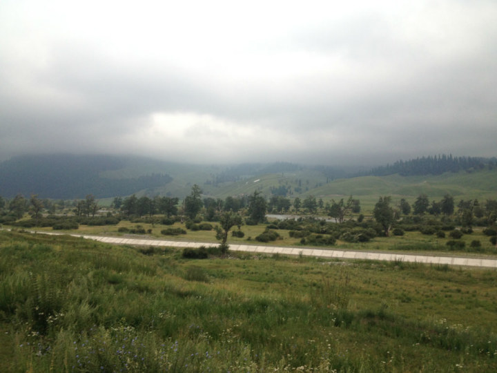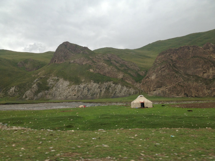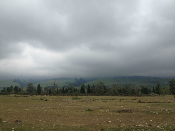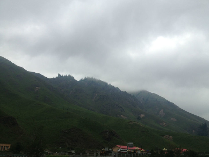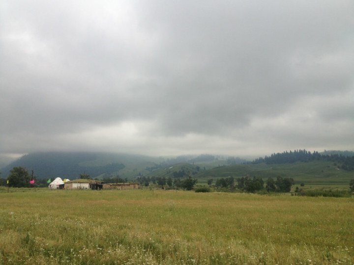 搭车到那拉提草原边上的一个村口,大哥要进村就把我们放下来了,那拉提的高山草甸,看上去也没什么特别的呢