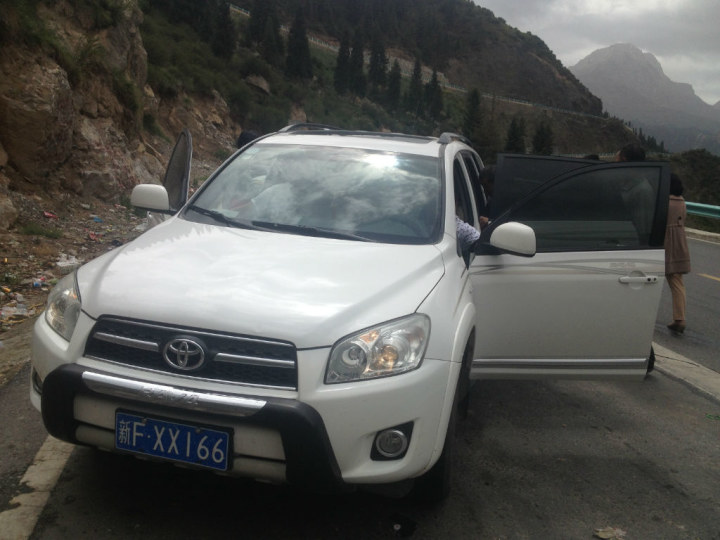 之后搭了辆车往巴音布鲁克走,在国道218和217交汇口把我们放了下来,搭车走217