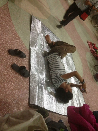 瞧这销魂的小睡姿~~一进候车室便技惊四座啊~~~