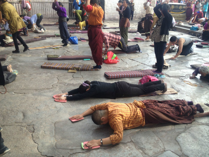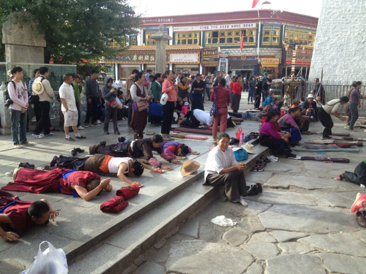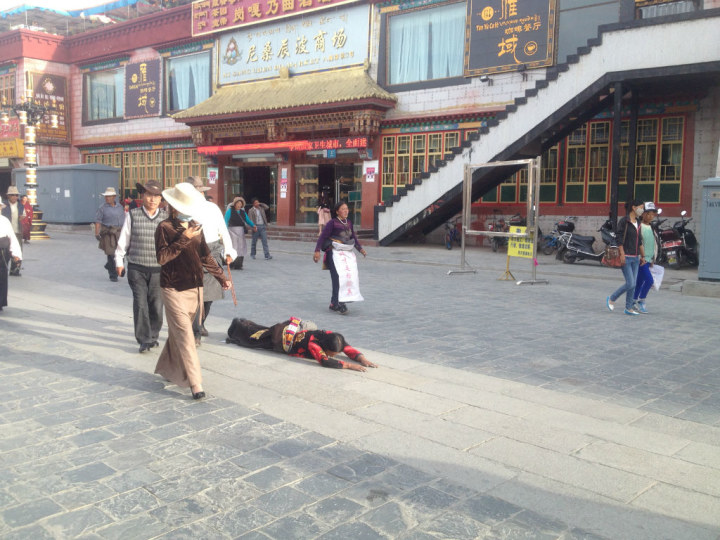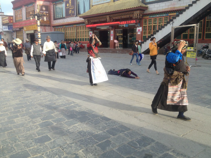 八廓街都是转经的,磕长头的,站在大昭寺门口,真的感觉到一种信仰的力量,让人情不自禁想要顶礼膜拜的感觉。。。