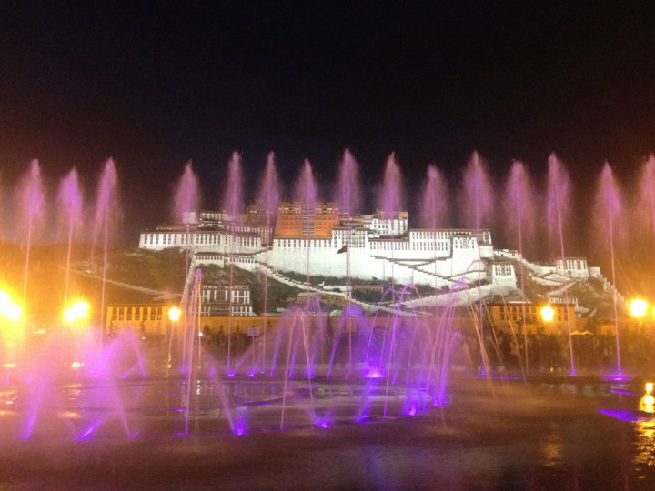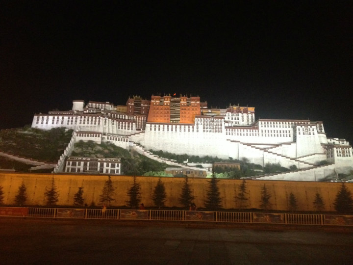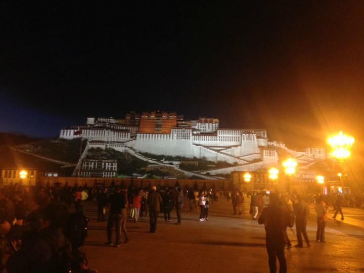 好吧,吃完饭已经夜幕降临~一路逛到布达拉宫前面的广场看夜景