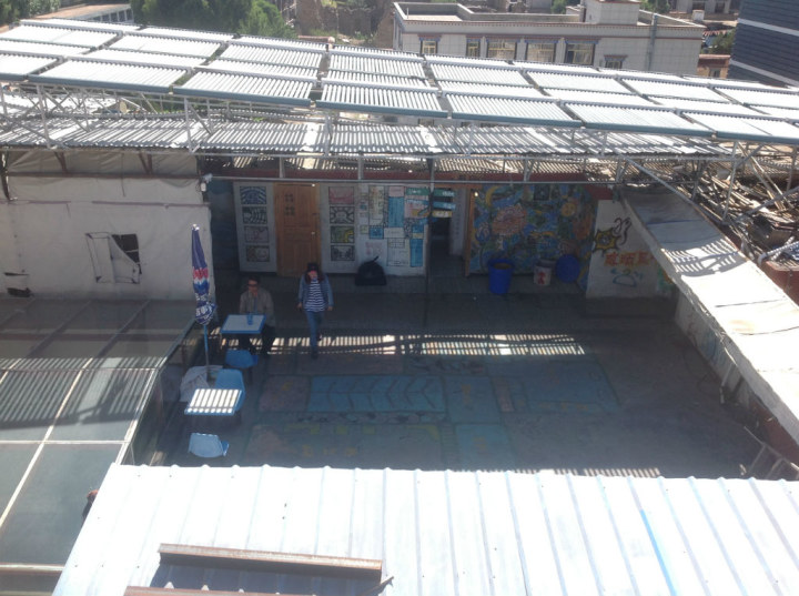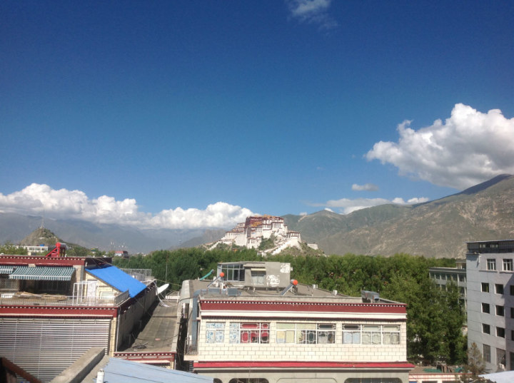 疯人院在平措的老楼,一进老楼仁哥刚从布宫回来不久,坐在大厅等我,我先去放行李,天台的风景真心不错!
