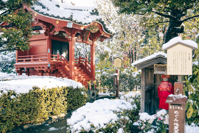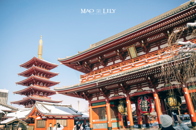 这是我第三次来到浅草寺,却是第一次见到被白雪覆盖的它,好美!