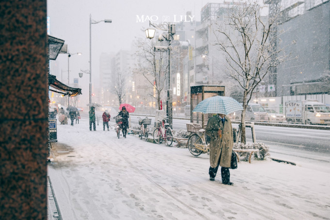 短短几小时,路面已经开始积雪了,而淡然的东京人依然重复着他们日复一日的工作,丝毫没有被打扰。