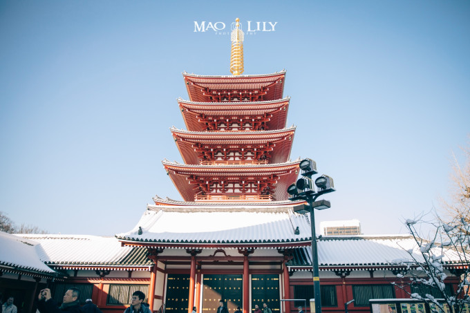 一眼望见了五重塔,这座东京都内能看到的唯一的五重塔,在夺目光芒处流露着雪的气息。