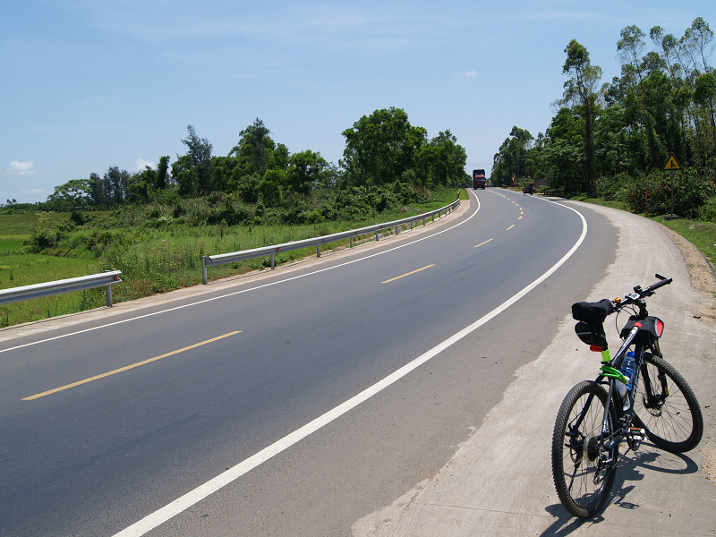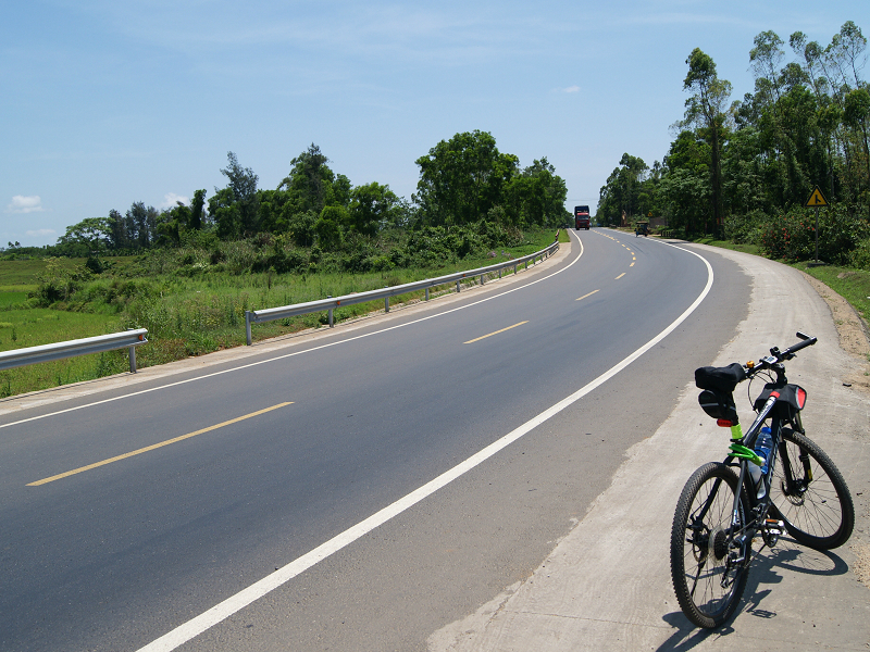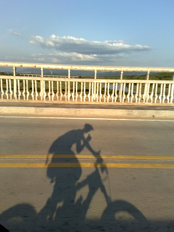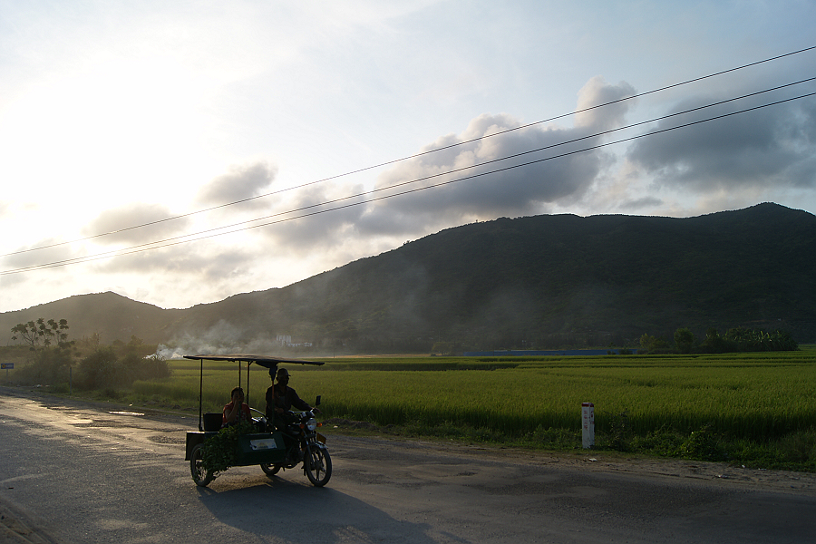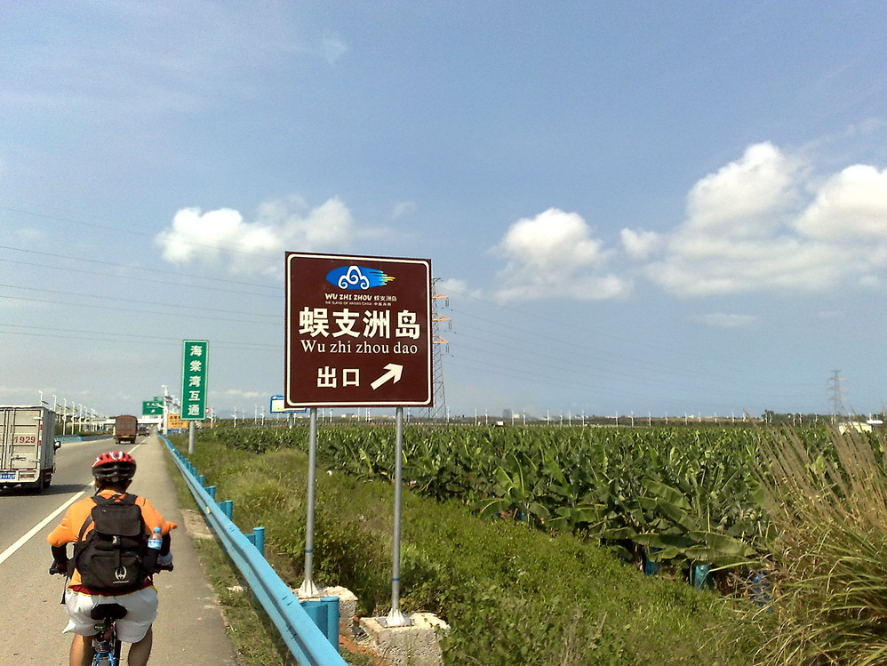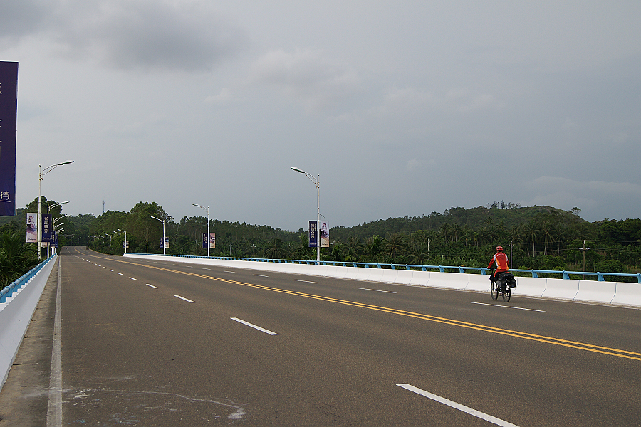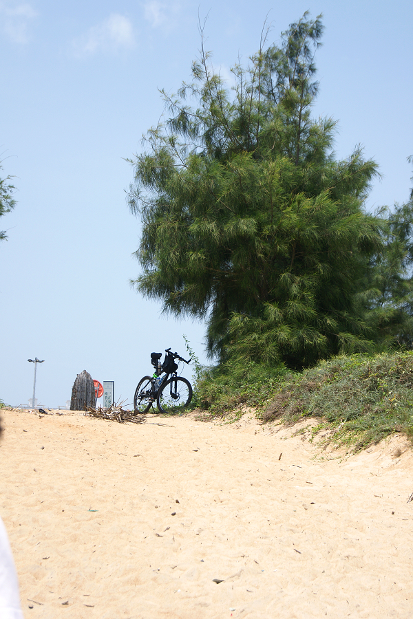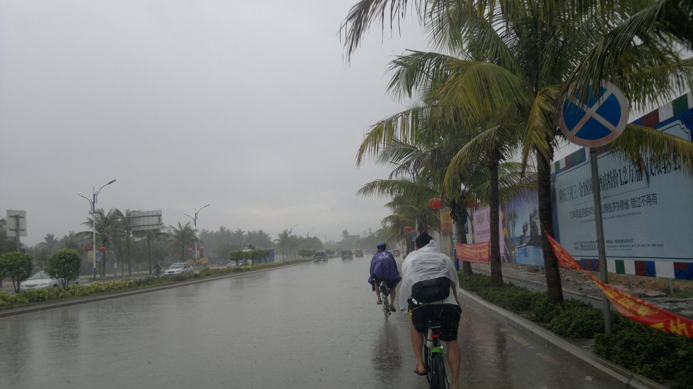 这天逆风,是骑得最辛苦的一天,因为修路了,迫使我们走高速,高速路风阻十分大,骑了几个小时,没骑多远,为了赶进度,为了能在三亚 玩一天,我们在路上拦到了一辆皮卡 (在海南 这种车十分常见,就是后面有一个兜的那种),把我们载到三亚 。感谢来自茂名 的司机——茂名 哥,他表示很羡慕我们,还希望以后可以骑单车环游世界,在这里我们也祝福你能够尽快实现你的愿望!!!