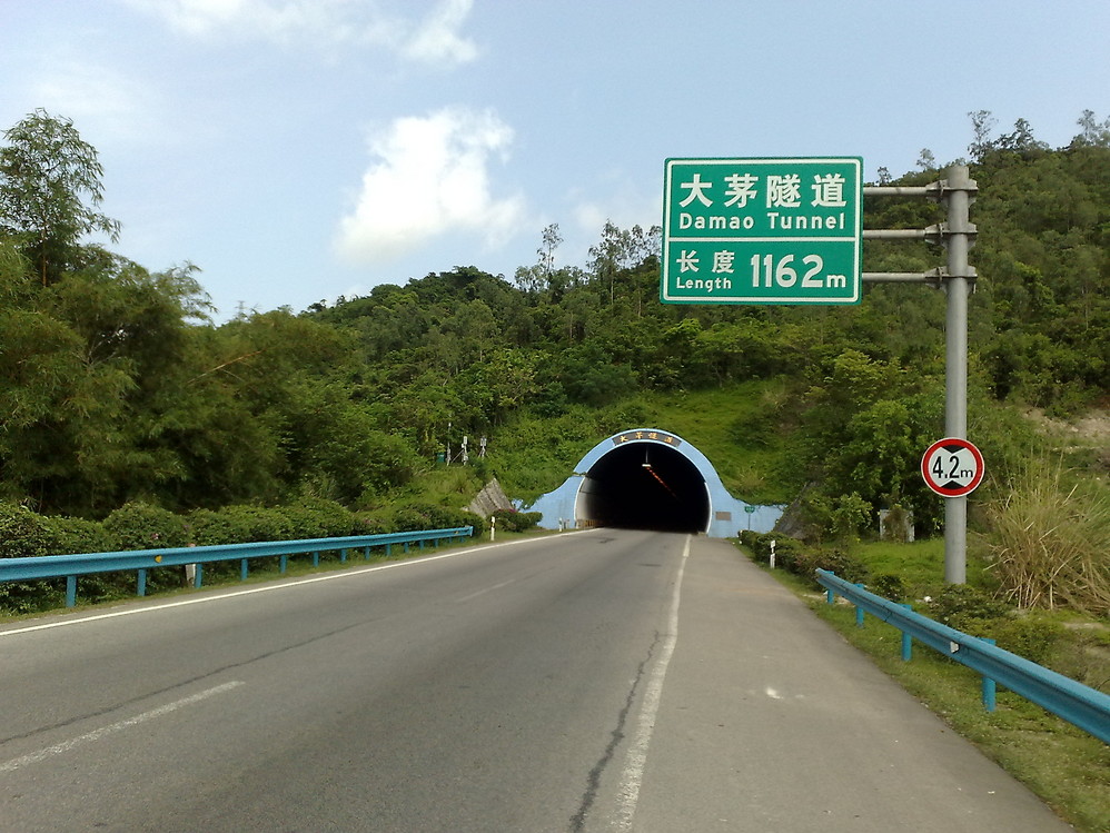 在海南 第一次走隧道,里面挺黑的,有点危险