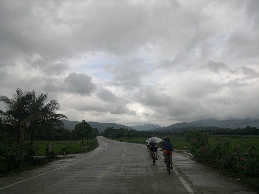 一起床,就听到外面的风雨声,为了保证按计划完成,我们冒着雨骑了一个上午...