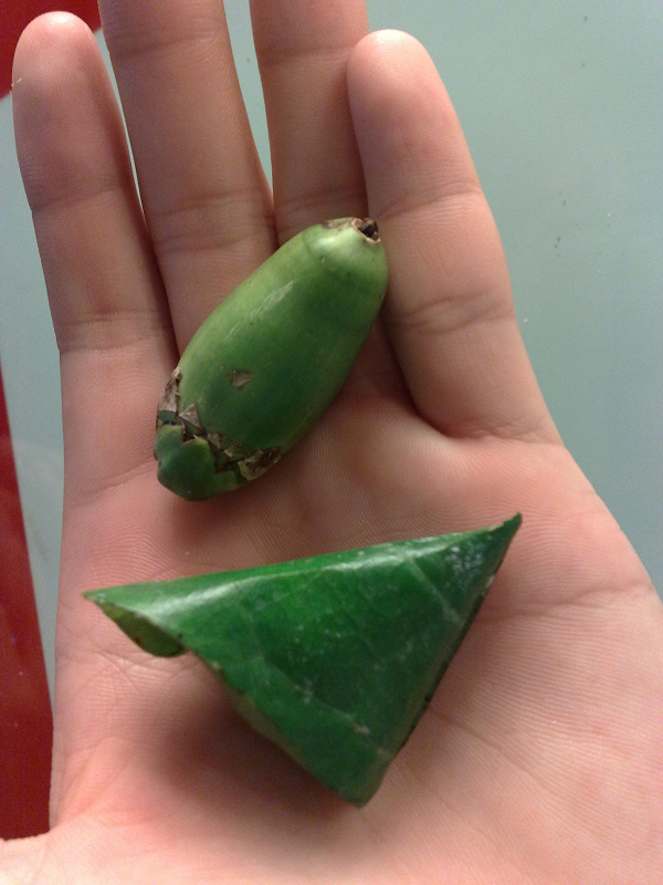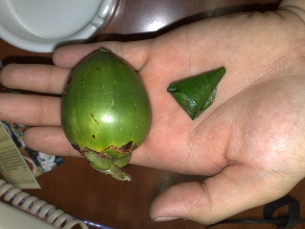 终于忍不住尝试了一下槟榔的滋味,还特意买一些小一点的。海南 人的吃法是槟榔加上一片树叶咀嚼,树叶里还包着一些石灰。咀嚼后有发热、胸闷、像喝醉酒一样的感觉,十多分钟后以上症状都消失了。真的不知道海南 人民如此喜爱吃槟榔,反正我就不喜欢
