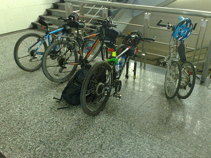 首先讲讲如何把自行车带上火车吧,在广州 和海口 的火车站工作人员都非常配合,可能是去海南 骑行的人太多了,他们都见惯不怪了,在广州 上火车的时候更搞笑,列车员一见我们带着车车的,就知道我们要去海南 ,还问是不是搭T201啊?山地车只要把前轮拆了,就可以上火车了。折叠就不用说了,一折就可以。但其他地方的火车站有没有这么顺利就不知道了,在火车上有车友表示在湖南 某站无论如何跟列车员周旋都不给上......