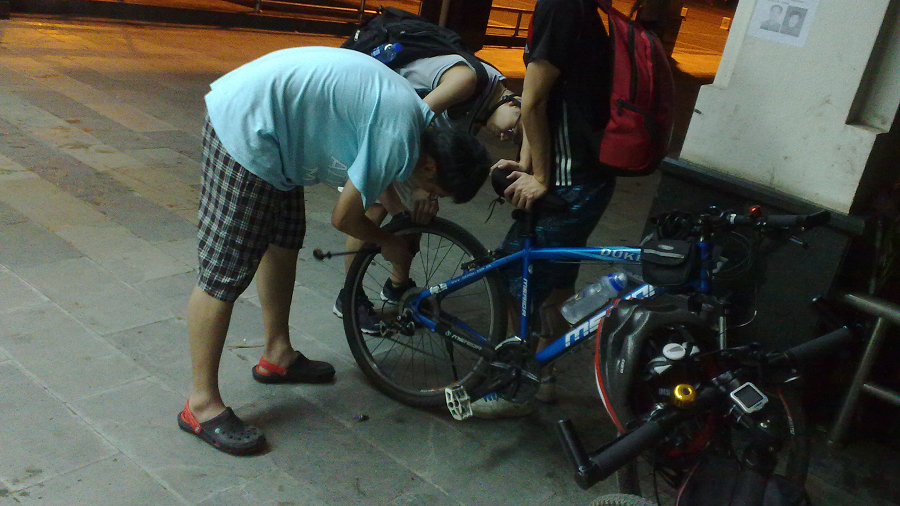 (我一共爆了4次,荣膺榜首),幸好出发前学了如何补胎,我现在已经是补胎高手了,哈哈