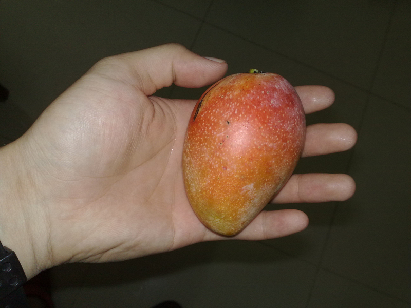 挑芒果小TIPS--不要贪图大个,小个的像下图的就可以了,红色的更佳,这种小芒果非常甜