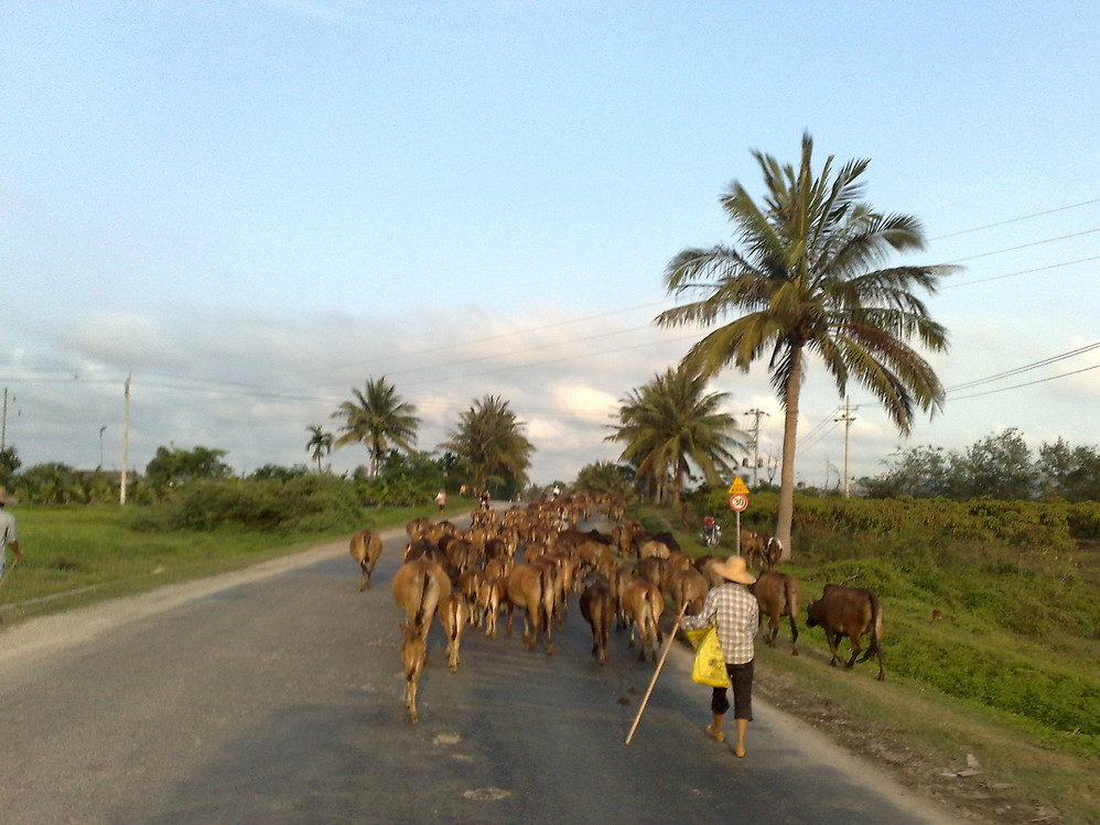 在海南 到处都可以见到小动物,什么牛啊、羊啊、鸡啊经常出现在公路边上