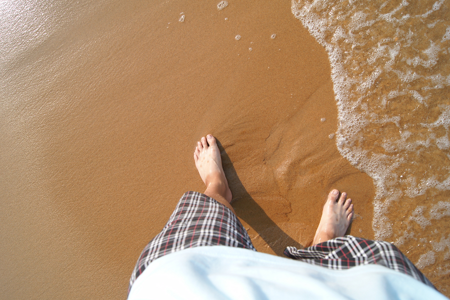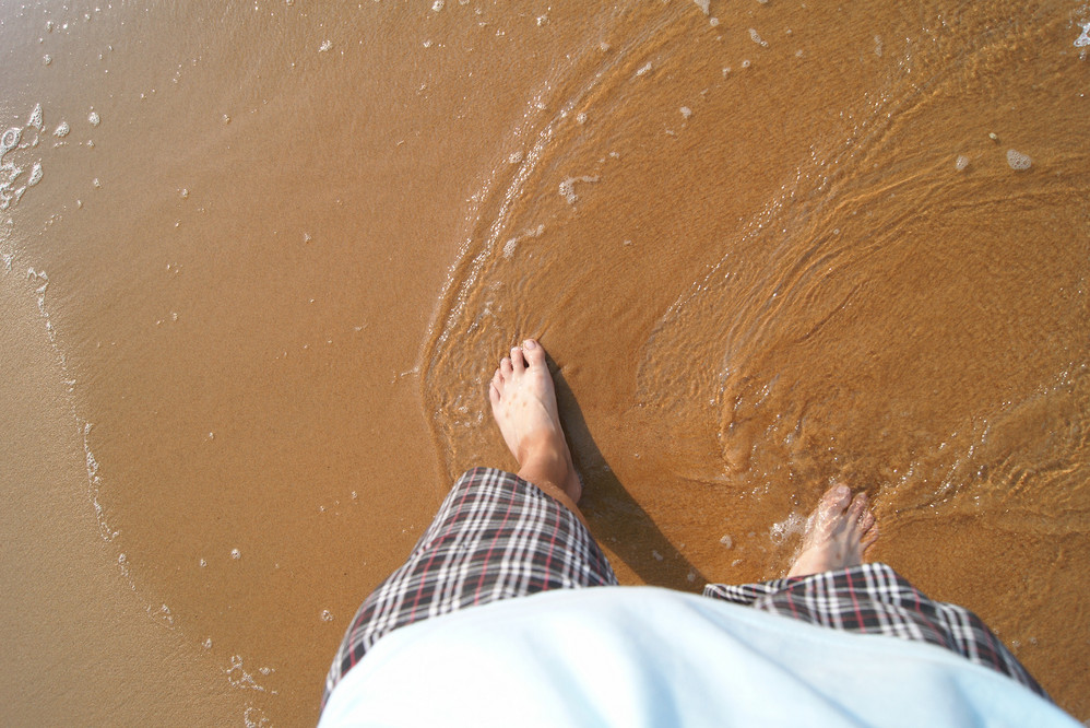骑了4天,终于看到大海了,十分兴奋,马上脱掉上衣下海游泳
