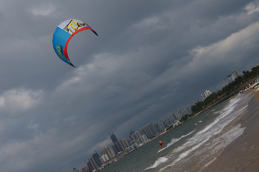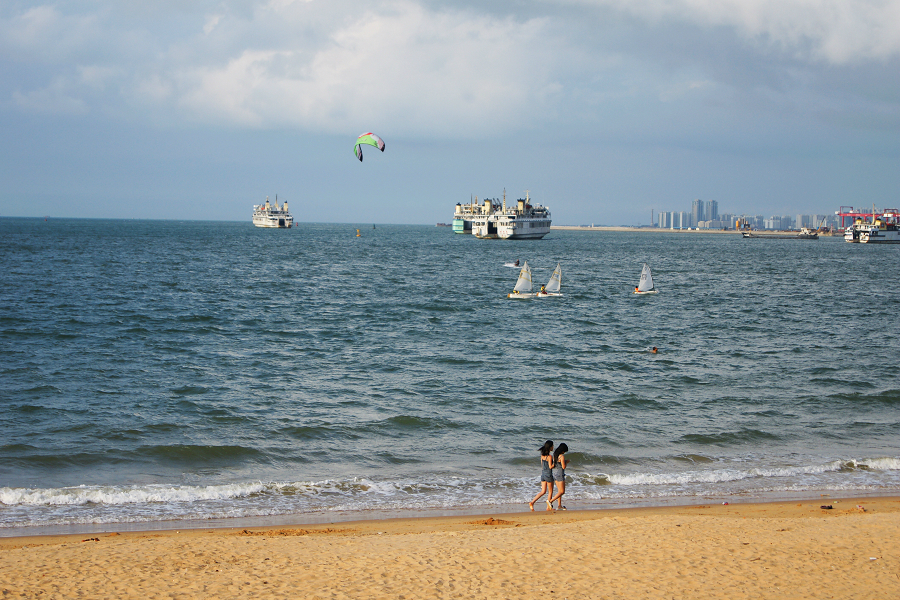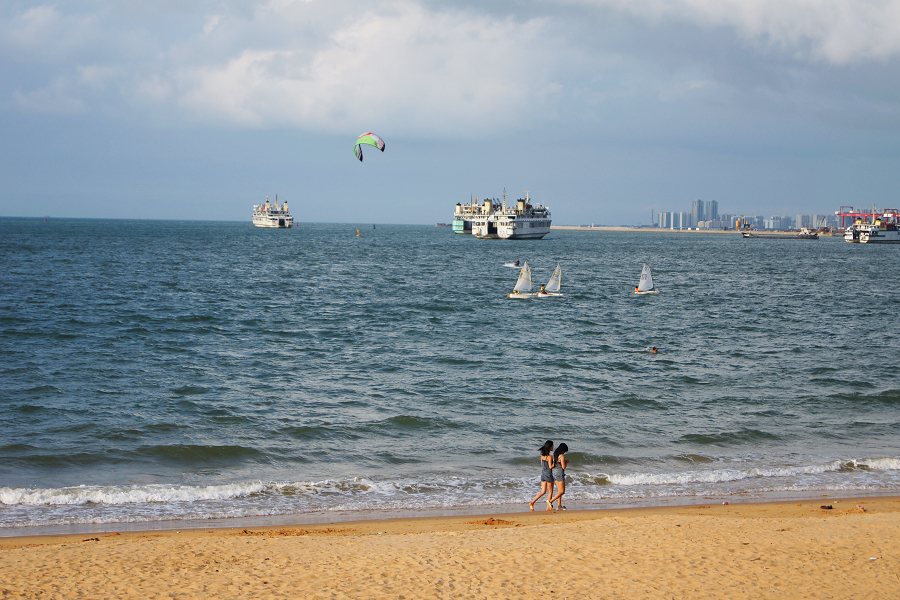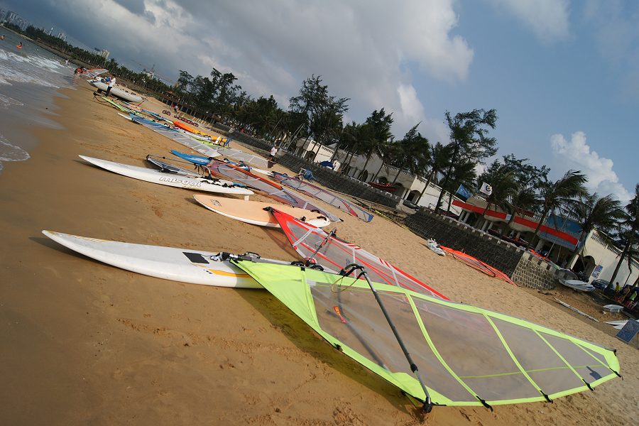 海口 沙滩有好多水上 活动,附近还有一个滑浪风帆培训学校