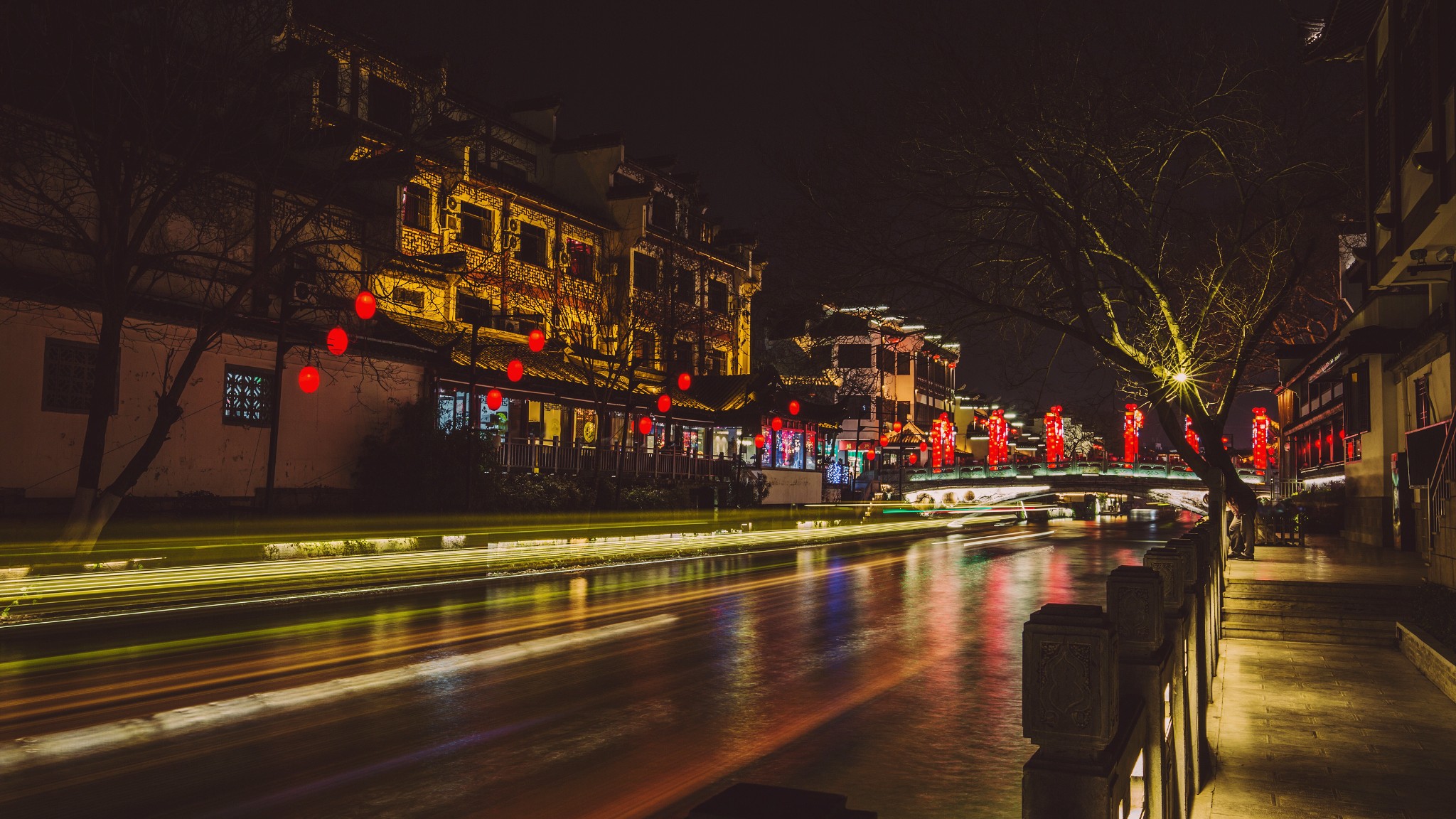 夜晚的秦淮河非常适合拍长爆和倒影。